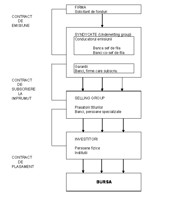 fie pe baza unei oferte competitive (engl. competitive bid). In cazul ofertei competitive, sindicatele bancare prezinta oferte companiei si sindicatul cu cea mai buna oferta castiga emisiunea de titluri;