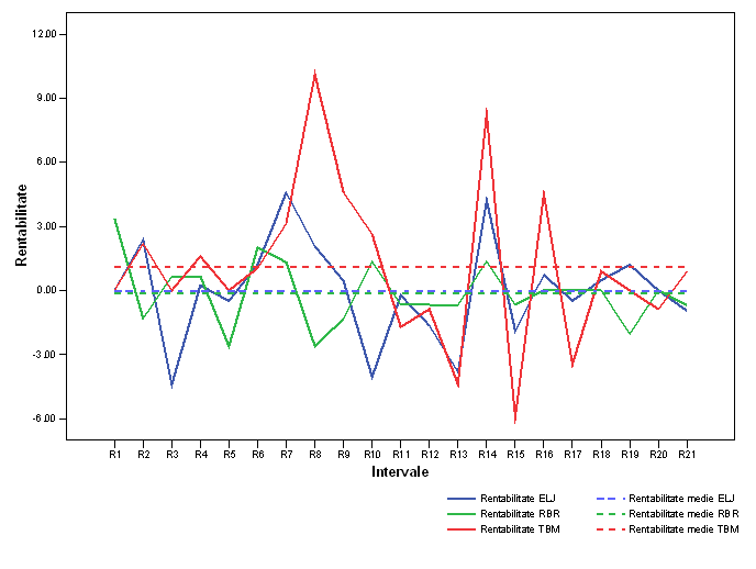 c) rentabilitatile medii pentru ELJ si RBR au valori foarte apropiate si in acelasi timp valorile lor sunt negative dar foarte apropiate de 0