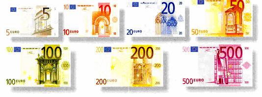 Biletele euro au fost desenate de artistul austriac Robert Kalina si reprezinta stiluri de arhitectura care caracterizeaza sapte perioade din cultura europeana[5]: