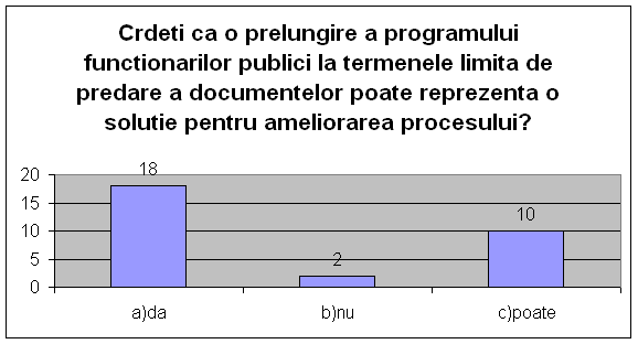 18. Credeti ca o prelungire a programului functionarilor publici la termenele limita de predare a documentelor poate reprezenta o solutie pentru ameliorarea procesului ?