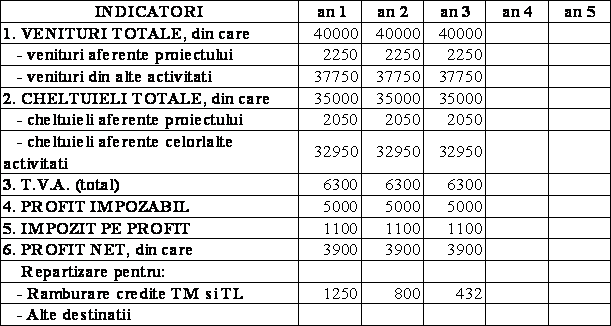 4.3.5. Planul de finantare a investitiei si proiectiile financiare pentru perioada de rambursare a creditului | |