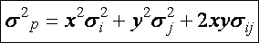 x, y = ponderile din capitalul total investit ale capitalurilor investite in titlurile i si j.