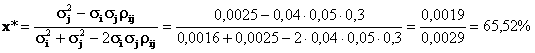 Asadar, portofoliul de varianta minima va avea in compozitie 65,52% din titlul i si 34,48% din titlul j.