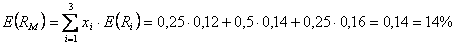 Rentabilitatea si riscul acestui portofoliu vor rezulta prin aplicarea relatiilor (1) si (2):