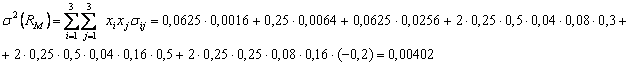 Pentru a determina rentabilitatea si riscul acestui portofoliu se vor aplica relatiile (1) si (2), rezultand: