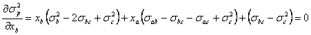 Punctul de optim este posibil acolo unde derivata intai a riscului portofoliului in raport cu ponderea x este egala cu zero si in care aflam ponderea optima x* a primului titlu si, complementar, ponderea 1 - x* a celui de-al doilea titlu: