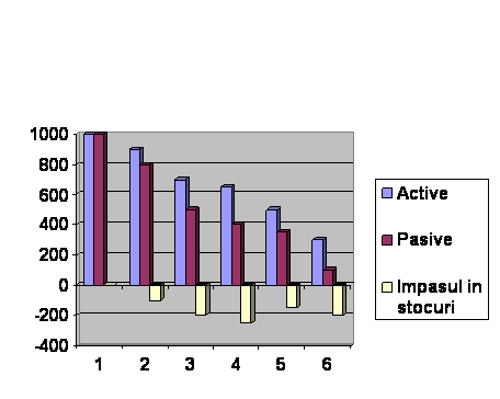 Impasurile in stocuri sunt identice, in valoarea absoluta cu impasurile in fluxuri cumulate dupa origine.
