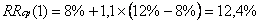 Aceasta crestere a lui beta, deci a riscului bancii, va duce la scaderea pretului actiunilor, care va trebui sa fie compensata prin cresterea lui RRcp al firmei, astfel:
