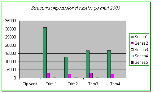 Structuraa impozitelor si taxelor trimestriale pe anul 2008.