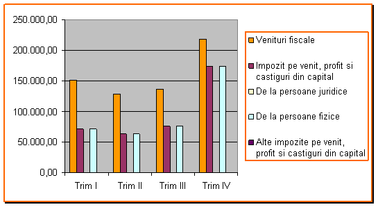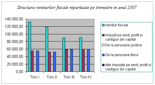 Veniturile fiscale inregistreaza in anul 2007 o scadere de la un trimestru la altul,impozitul pe venit, profit si castig inregistreaza o crestere in trim 4 ajungand la o valoare de 58.161 Ron, deasemenea si veniturile de la persoanele fizice.