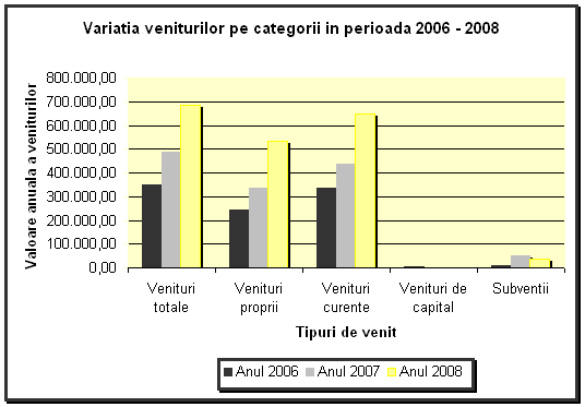 In cazul veniturilor totale se inregistreza o crestere de la un an la altul astfel daca in 2006 inregistra o valoare de 349.436,00 Ron, in 2007 s-a ajuns la o valoare de 488.707,00 Ron si in 2008 s-a inregistrat o valoare de 683.673,00 Ron.
