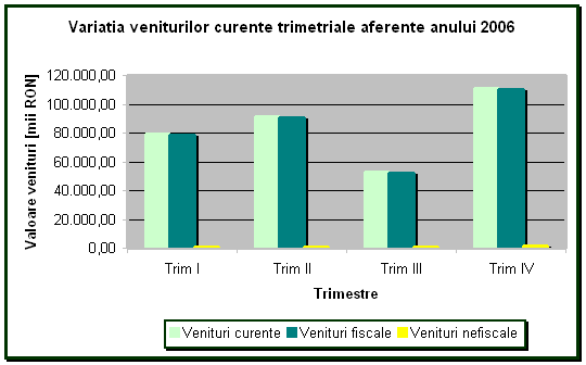 In tabelul de mai jos se prezinta variatia trimetriala pe anul 2006 a componentelor veniturilor curente (venituri fiscale si nefiscale). Similar se procedeaza in continuarea lucrarii pentru veniturile curente trimestriale ale animor 2007 si 2008.