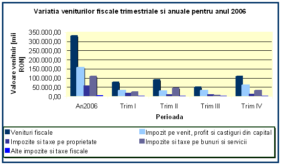 Variatia veniturilor fiscale trimestriale si anuale pentru anul 2006.