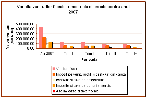. Variatia veniturilor fiscale trimestriale si anuale pentru anul 2007