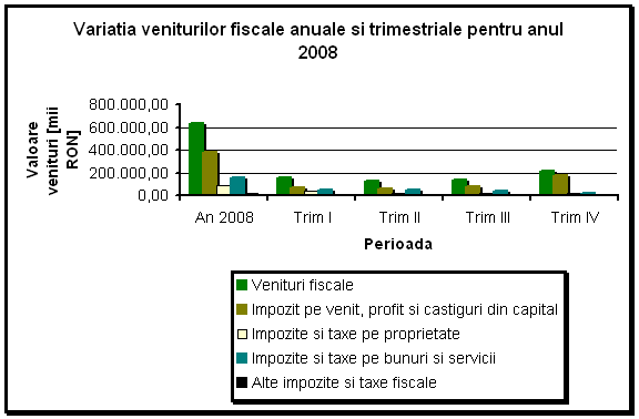 Variatia veniturilor fiscale trimestriale si anuale pentru anul 2008