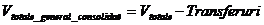 Obs!!! Transferurile consolidabile sunt fluxuri care pronesc de la un buget din cadrul sistemului unitar de bugete si ajung la un alt buget din cadrul aceluiasi sistem. La prima vedere, transferurile intre bugete care apar la venituri ar trebuie sa fie aceleasi cu cele care apar la cheltuieli. Diferenta ce se poate observa in aplicatia noastra se datoreaza faptului ca exista sume provenite din credite externe contractare de ministere si alocate unor institutii publice. Aceste sume apar doar la partea de cheltuieli si sunt raportate de ambele entitati. (Ex: credite externe contractate de Ministerul Transporturilor si Gospodariei Drumurilor si alocate Companiei Nationale de Autostrazi si Drumuri Nationale)