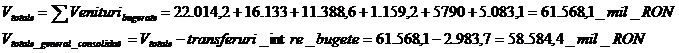 Determinare venituri totale general consolidate, cheltuieli totale general consolidate,