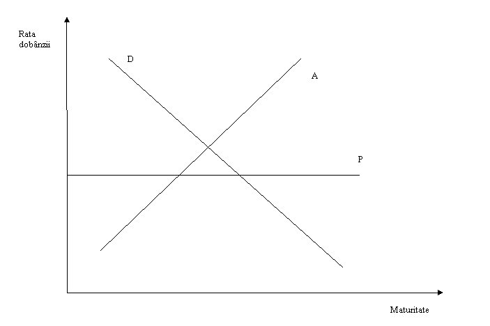 curba plata, P, evidentiaza ca randamentele titlurilor, indiferent de scadenta, sunt aceleasi si deci, raporturile dintre cerere si oferta sunt echilibrate pe ansamblul pietei;