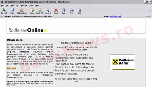 recent, Banca Raiffeisen a derulat o procedura de reverificare a conturilor online datorita numarului crescand de frauda in anumite tari europene. Protejarea securitatii contului Dumneavoastra si a retelei Raiffeisen este principala noastra grija. Ca si o masura preventiva trebuie sa va reverificati datele online pentru o mai mare siguranta. Va rugam sa va logati dand click pe linkul de mai jos: