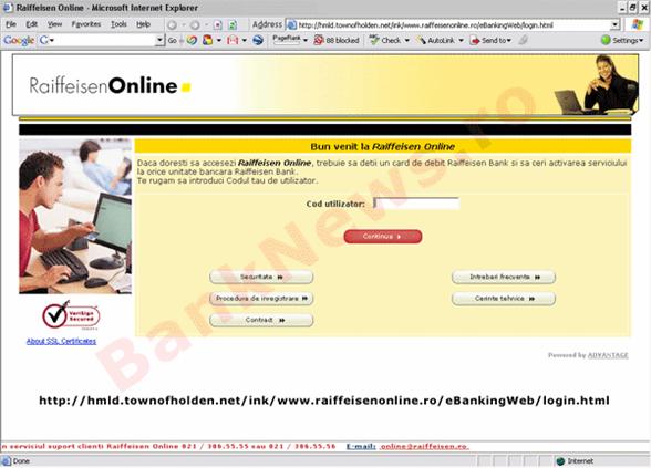 Adresa site-ului era insa https://hurra.modelo.edu.mx/link/raiffeisen.html cu redirectinare catre http"//hmld.townofholdeen.net/ ink/www.raiffeisenonline.ro/ ebankingWeb /login.html, care este, in mod evident, un site fraudulos.