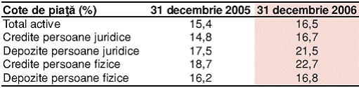 BRD - Societe Generale detinane urmatoarele cote de piata :
