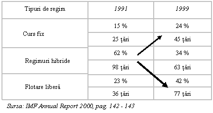 Daca in anii '90 dominau regimurile hibride, in prezent, printre tarile participante la Sistemul Monetar International, se remarca o preferinta pentru extremele regimului valutar (curs fix respectiv flotare libera). Aceasta preferinta poate fi explicata pe de o parte printr-un numar tot mai mare de economii ce au atins un grad de dezvoltare capabil sa sustina un curs complet liberalizat sau gradul din ce in ce mai mare de integrare intre pietele financiare dezvoltate si cele emergente, si pe de alta parte poate fi explicata prin crizele sistemice profunde cu care s-au confruntat unele tari, obligate fiind sa opteze pentru fixarea cursului de schimb.