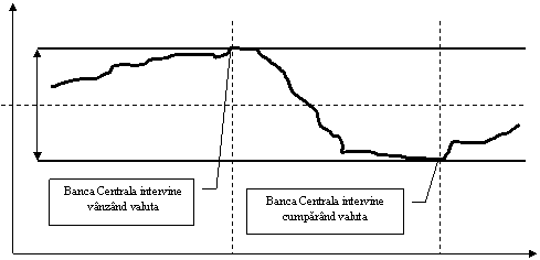 In cazul acestui regim valutar interventia Bancii Centrale se rezuma la a stabili pivotul, largimea bandei de variatie dar si in mentinerea cursului de schimb in interiorul bandei prin vanzarea / cumpararea de valuta atunci cand cursul de schimb atinge limitele de variatie.