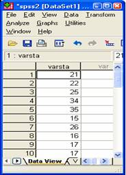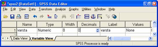 In "Variable View" din "Data Editor" se denumeste prima coloana "Varsta".