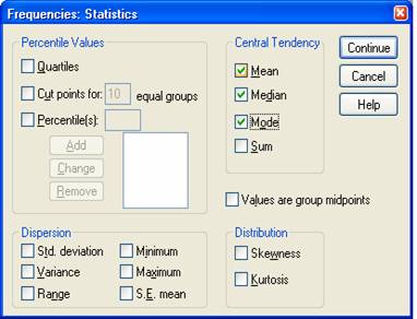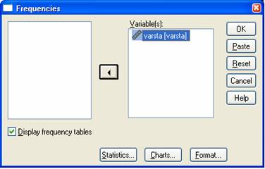 In casutele de dialog de la pasul 5 se pot observa mai multe valori statistice aditionale care pot fi calculate: