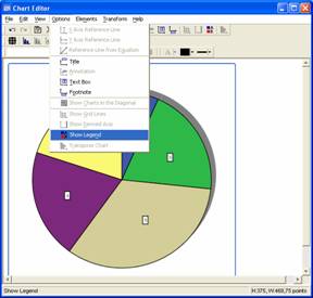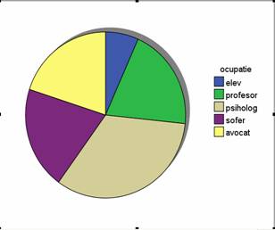 SPSS. Sectoarele din cerc sunt codate cu diferite culori.