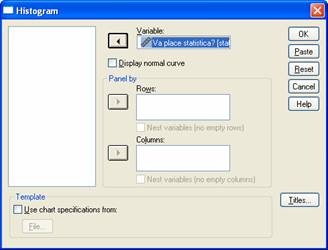 * Histograma este folosita pentru a arata forma unei distributii dupa o variabila inregistrata asupra unei colectivitati (frecventa de aparitie pentru diferite clase de valori ale variabilei observate).
