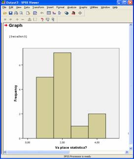 Pentru a ilustra procesul de realizare a unei histograme vom folosi datele obtinute din raspunsurile subiectilor la intrebarea "Va place statistica?". (raspunsuri: a. foarte mult; b. mult; c. putin; d. foarte putin; e. deloc).