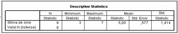 Calcularea erorii standard estimate pentru medie este ilustrata cu un set de sase scoruri ale stimei de sine, prezentate in tabelul urmator.