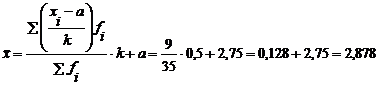 a=2,75 - varianta corespunzatoare celei mai mari frecvente;