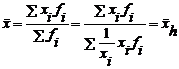 2) Cand f1x1 f2x2 fnxn, caz in care se foloseste numai media armonica ponderata, adica: