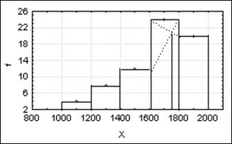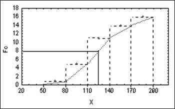 poligonul frecventelor cumulate. De pe ordonata din dreptul lui