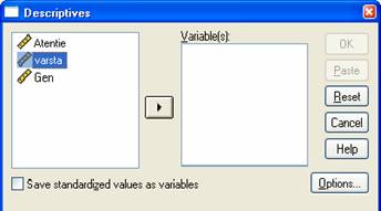 Se selecteaza Descriptive statistics;