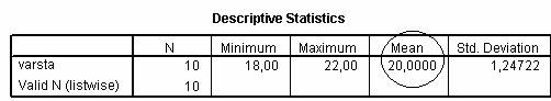 Fereastra Data Editor este inlocuita de output-ul SPSS-ului. Acest tabel apare pentru analiza realizata anterior.