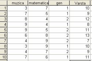 obtinute de catre un numar de 10 copii