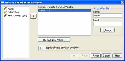 5. Pentru recodificarea intr-o variabila diferita se selecteaza: