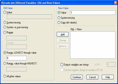 a. transform/recode/into different variables;