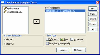 din nou. Se apasa "OK" pentru a obtine output-ul Testului Wilcoxon.