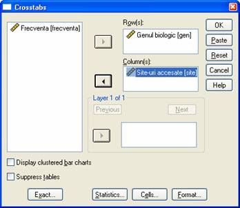 Se selecteaza Frecventa, Weight cases by si apoi se