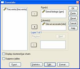 *Testul chi-square analizeaza frecvente. Niciodata acestea nu trebuie sa fie transformate in procente pentru a fi introduse in SPSS, deoarece vor da rezultate eronate atunci cand se vor calcula valoarea si semnificatia chi-square.