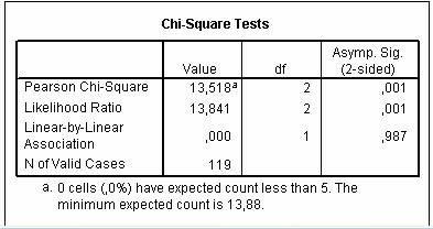 (Pearson) chi-square (13,518), gradele de libertate (2) si
