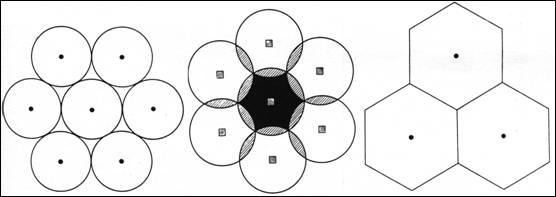 Fig. 17. Modelul Christaller. De la cercuri la hexagoane. Sursa: B.J.L. Berry (1968)