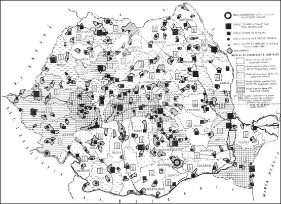 Fig. 21. Ierarhia centrelor urbane in Romania. Sursa: V. Cucu (1981)