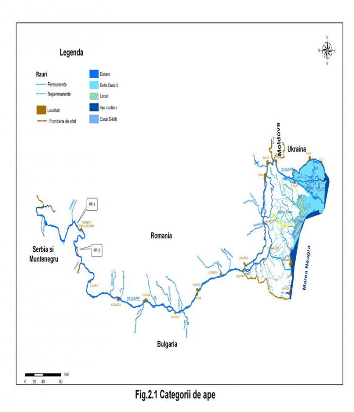 Pentru fluviul Dunarea toate corpurile identificate au fost desemnate provizoriu drept corpuri de apa puternic modificate