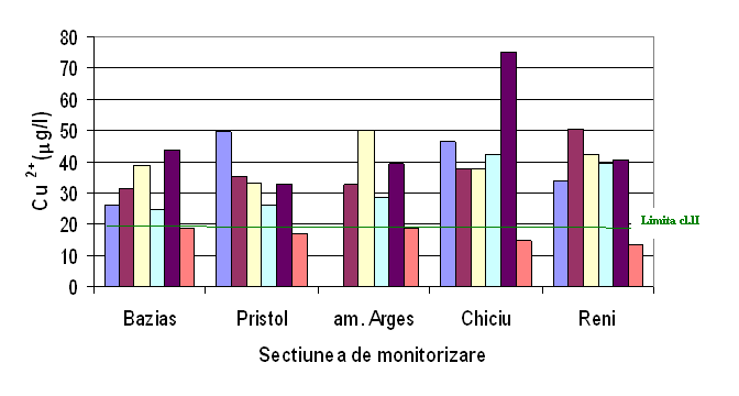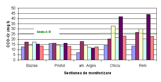0,186 mg/l) au corespuns, pentru toate sectiunile, categoriei II.(***, 2005)
