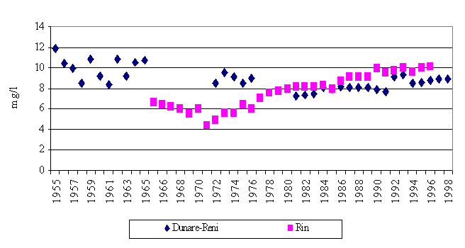 mg/l) au incadrat Dunarea, in general, la categoriile IV - V, exceptie facand
